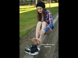Description: Cute college blonde Katie from the way way back machine Archive sets, in the "Pose" and sharing her bare feet to you at the park. |